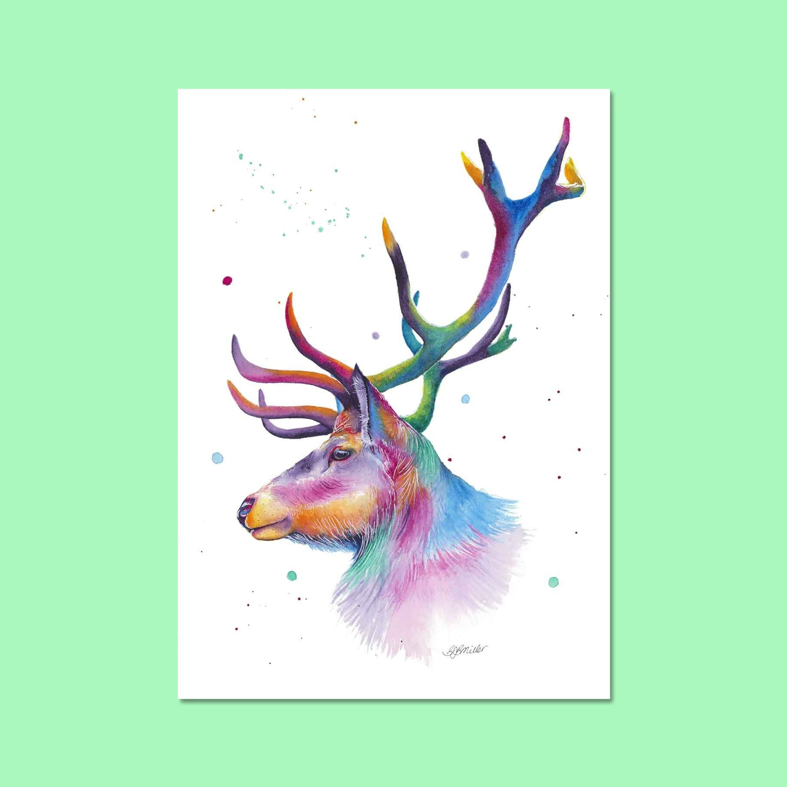 Colourful Stag Wall Art Print Vibrant Deer Head Painting Etsy