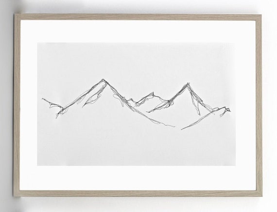 Mountains Line Drawing Etsy