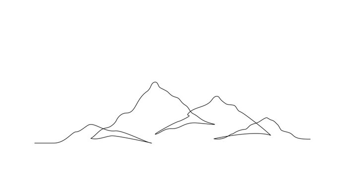 Continuous One Line Drawing Of Mountain Landscape High Mounts Peak Lineart Drawing Vector Design Adventure Winter Sports Stock Vector Illustration Of Continue Continuousline 266495429